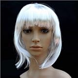 Cosplay party time! The white pretty straight bang cosplay wig hairpiece - bobo head is extremely suitable for attending performances, balls and parties. It's very easy, comfortable and fashionable to wear.